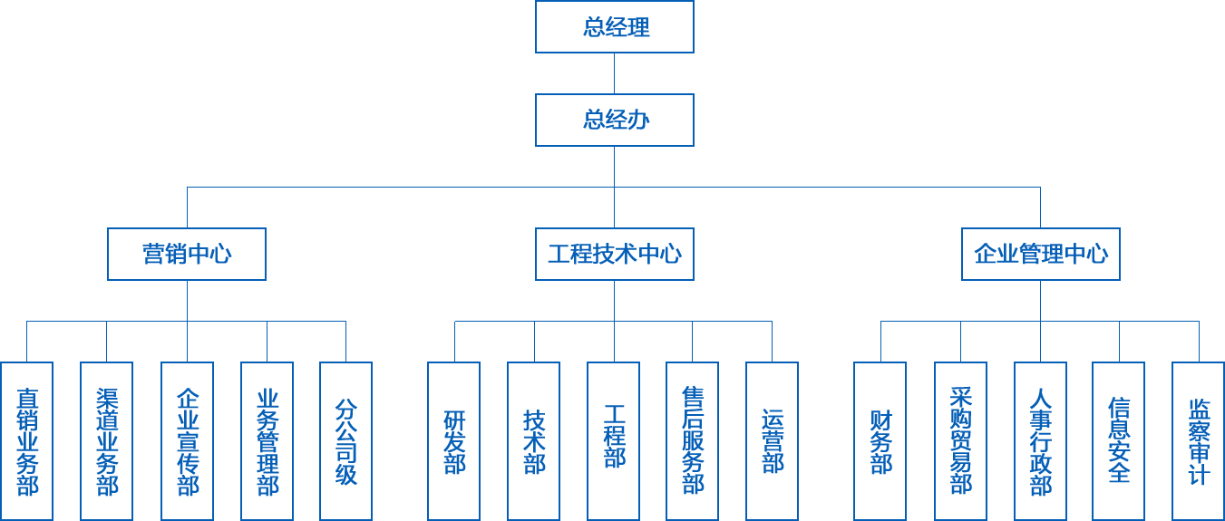 總經(jīng)辦為公司領(lǐng)導(dǎo)/經(jīng)營(yíng)/管理核心,下設(shè)3中心(包括:營(yíng)銷(xiāo)中心、工程技術(shù)服務(wù)中心和企管中心)和14個(gè)職能部門(mén)。公司在上海、石家莊、西安、長(zhǎng)春、沈陽(yáng)、太原、青島、濰坊、合肥、烏魯木齊和成都等地設(shè)有分公司、辦事處或服務(wù)站;現(xiàn)有員工150余人,其中:高級(jí)管理人員15人、高級(jí)技術(shù)專(zhuān)家5人、水暖工程師6人,電氣工程師4人,工程預(yù)算師3人,專(zhuān)業(yè)鍋爐及供暖系統(tǒng)安裝人員近60人。他們以高超的專(zhuān)業(yè)技術(shù)為廣大用戶(hù)及各地代理商提供完善的售前/售中/售后服務(wù)。